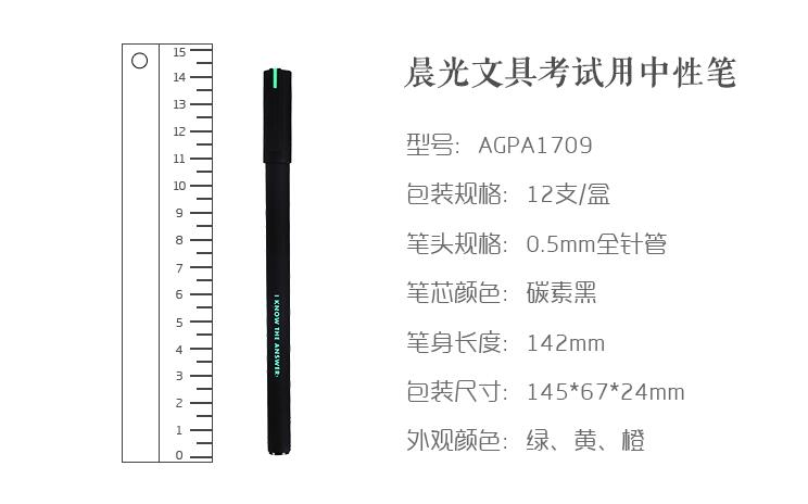 晨光文具中性笔0.5 6支学生考试专用笔碳素黑签字笔全针管水笔芯A1709